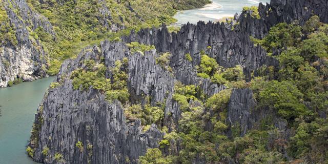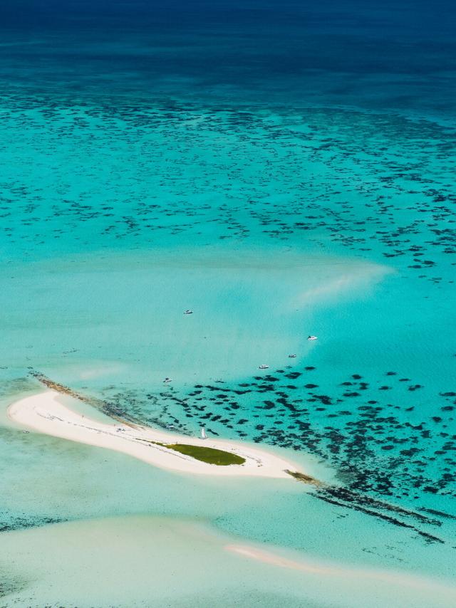 ニューカレドニア北部では、ヤン=アルテュス・ベルトランの写真で有名になった、マングローブの湿地の中にあるヴォーのハートをお見逃しなく。上空から眺めるのに最高の場所のひとつであり、緑の中にあるハートの形をはっきり見ることができるのは上空からだけです。クマックまたはコネ(またはヘリコプターでマジェンタ)から出発し、ユネスコ世界遺産に登録されたラグーンの上空を進み、見事なサンゴ礁に彩られた、白い砂浜を誇るウアンジョのブルーホール、さらに、コニアンボ山を背景に、ニッケル・デュ・ノール工場とその広大な採掘場を通過します。