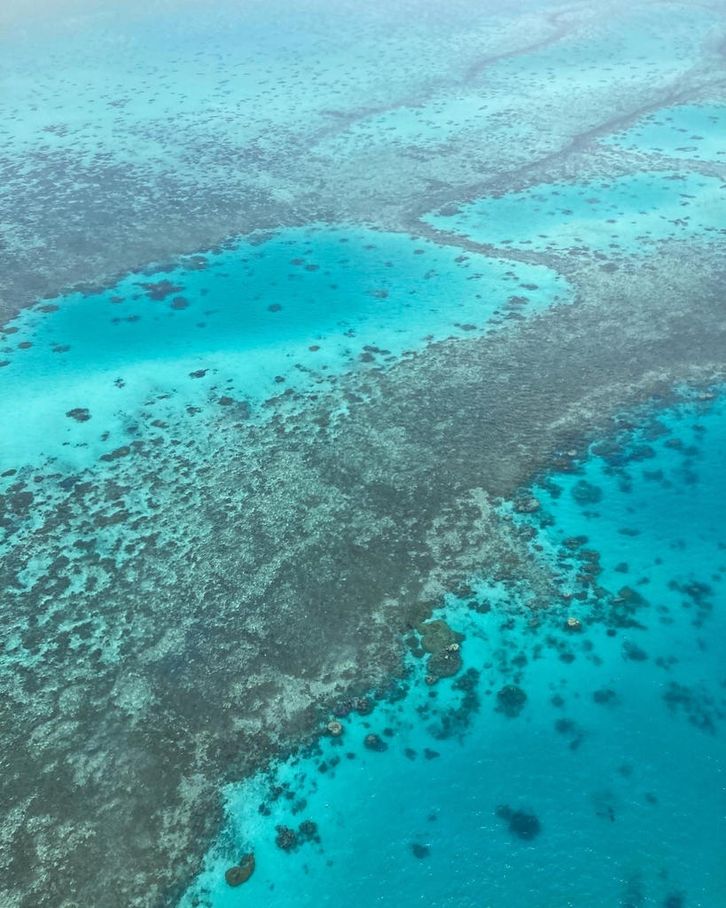 ヌメアのラグーンと小島の上空飛行