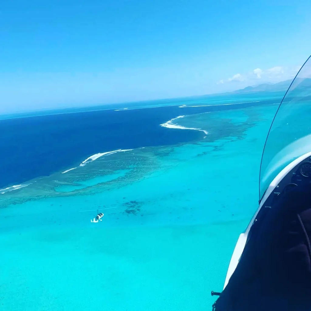 ラ・フォアのウアトム飛行場から出発し(またはヘリコプターでマジェンタ空港から)、農地、テランバ要塞、ラグーンとモアンドゥ礁、そして穏やかな朝の光に輝くラ・フォアの渓谷と川のパノラマビューを楽しむことができます。